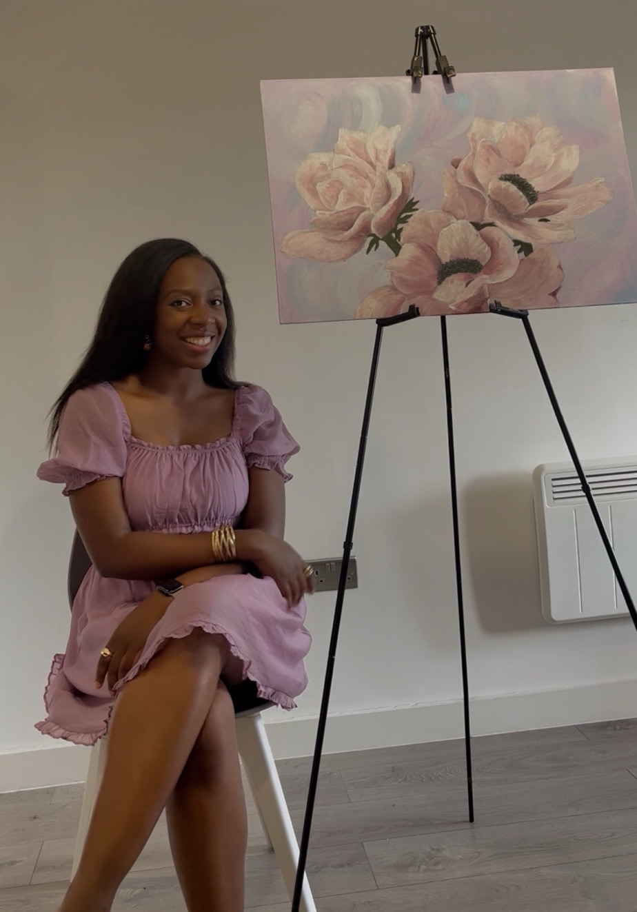 Ayobami is a multidisciplinary artist specializing in floral artwork and expressive abstract pieces. Being drawn to vivid colours and darker tones, her pieces combine both abstract acrylic blends and expressive ink hatching method.